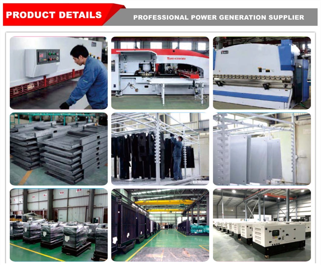 A.STANDARD SUPPLY:1.Brand new CCEC/DCEC, PERKINS, DEUTZ, DOOSAN, YUCHAI, KUBOTA, RICARDO, YANGDONG, water cooled diesel engine.2.Brand new STAMFORD, LEROY SOMER or WINT single bearing 3 phase brushless alternator with 100% copper, IP23 and H insulation class.3. Standard 50ºC radiator with safety guard, engine driven fan mounted on skid4. DEEPSEA, COMAP, SMARTGEN controller brand with Auto/Manual start and AMF function5. DELIXI, CHINT or ABB branded MCCB circuit breaker mounted.6. Heavy-duty fabricated steel based frame with convenient lifting, forklift pockets7. Complete set mounted on a based frame with anti-vibration mountings.8. Industrial 9 dB muffler exhaust system with blexible connects and bellows.9. Based frame with fuel, oil and coolant drain cocks for easy maintenance.10. 12/24V DC electric start system with free maintaining battery & floating battery charger.11. Standard with built-in fuel tank for 8 hours running. Canopy noise levels @7 meters with 70 dB12. Test report of generator, set of drawings and manuals. CE, ISO9001 approvedΔ OPTIONAL SUPPLY: 1.Weatherproof canopy / Soundproof canopy / Trailer-mounted2.Engine / Alternator Pre-heaters3.Auto load sharing & synchronizing panel4.Build-in ATS (Auto start & stop Main Failure (AMF)5.Large 12/24 hours fuel tank6.Power output socketsΔTESTING ITEMSWintpower factory inspection: the test items before delivery are mainly as follows:1.Parts faults testing2.Fuel tank pressure testing3.Bolt tightening torque testing4.Painting thickness testing5.Voltage bearing and insulation testing6.The noise level is tested by requested7.loadingtest range 25% 50% 75% 100% 110% 75% 50% 25% 0%ΔWintpower Silent typeDiesel Generator, advantagesas follows:1. Integrated interface with humanized and practicablydesign2. Super silentmaterial and treatment reach 70dBA@1M full load3. Steel material thickness2MM to 4MM,cut and fold by CNC4. New safe door handle, updated lock, bottom forkliftand top lift5. Aviation outtake connectorad operation LED light6. Free maintenance battery with floating charger8. 8-24hoursbase fuel tank with electrical fuel indicator9. Powder coating canopies afterchemistry treatment
